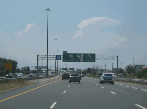 CHANGES FOR INTERCHANGES: In 2022, the MTO rebuilt EXIT 38 (RR 89 / Glendale Avenue) as a "diverging diamond" interchange. The diverging diamond design briefly shifts traffic along Glendale Avenue to the opposite sides of the QEW overpass to allow smooth, signal-controlled left turns onto and off the QEW ramps without crossing opposing traffic. Including design work, the C$54 million interchange makeover was completed over a two-year period. It was the first diverging diamond interchange built in Ontario and only the third one built in Canada at the time.